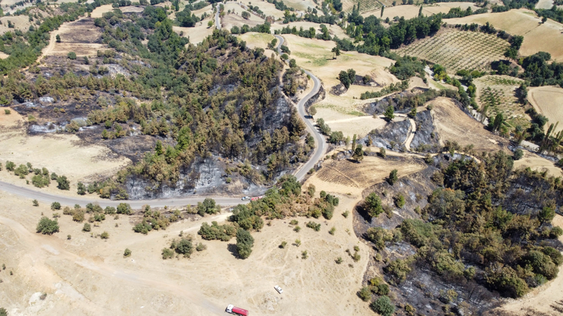 Dron ile çekilen görüntülerde, yanan ve zarar gören ormanlık alanlar yer aldı.