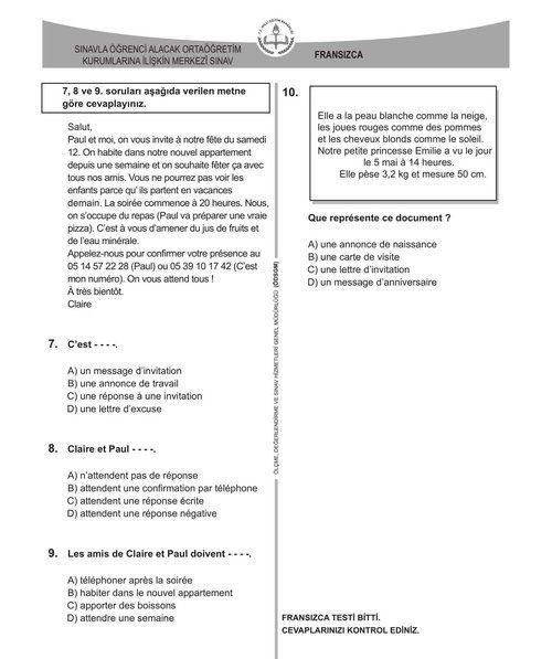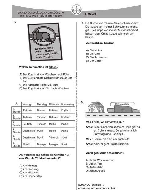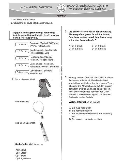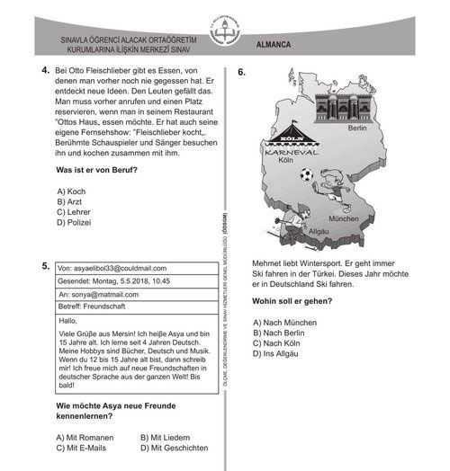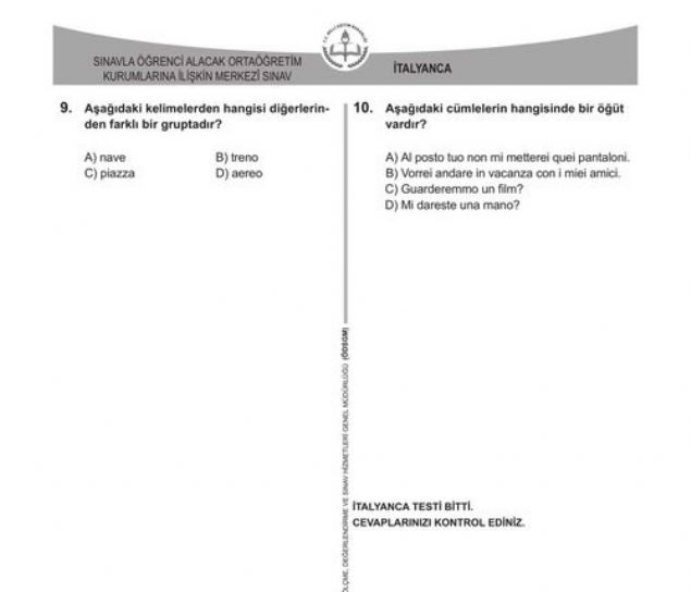 2018 LGS sözel sınavı Yabancı Dil soruları...