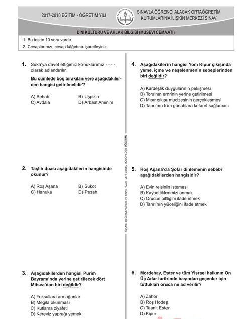 LGS sınavı Din Kültürü (Yahudi cemaati) soruları...