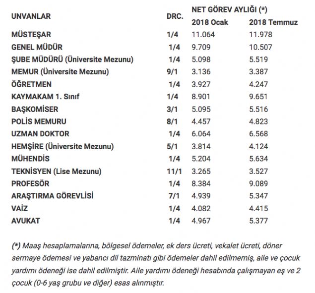 Yeni memur maaşları 2018 zamlı liste öğretmen, hemşire, vaiz, polis...