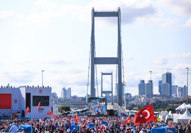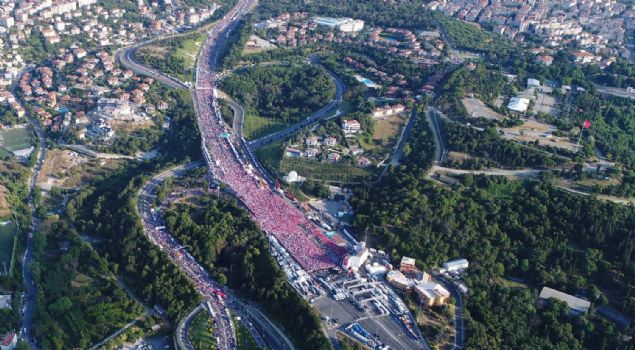 Tam bir yıl önce hain darbecilerin tanklarına, silahlarına siper olmak için sokağa dökülen Türkiye, bugün demokrasiye bağlılığını bir kez daha haykırmak ve şehitleri anmak için sokakta.