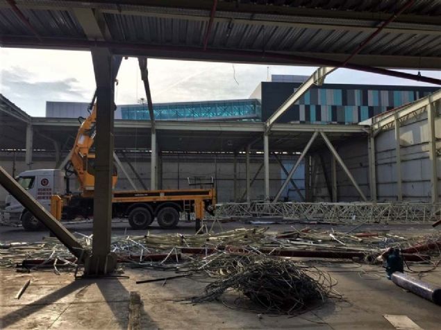 Sivil havacılığa kapatılan havalimanındaki bina ve tesisler yıkılıyor.