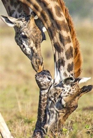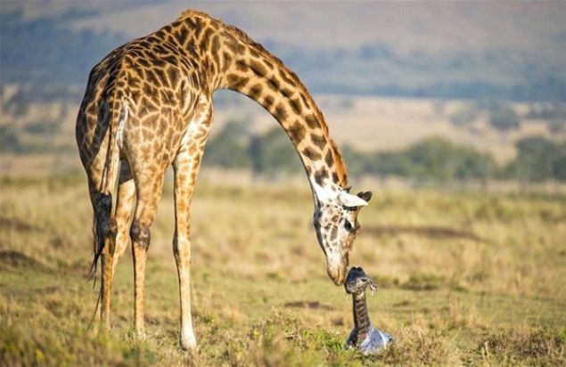 Kenya'da fotoğraf karelerine minik bir zürafa yavrusunun doğum anı takıldı. Yaklaşık 30 dakika süren ve annesinin dört ayak üzerinde durarak dünyaya getirdikten sonra koklayarak ve yalayarak güven vermeye çalıştığı yavrunun ürkek bakışları dikkat çekti. İşte o anlar...