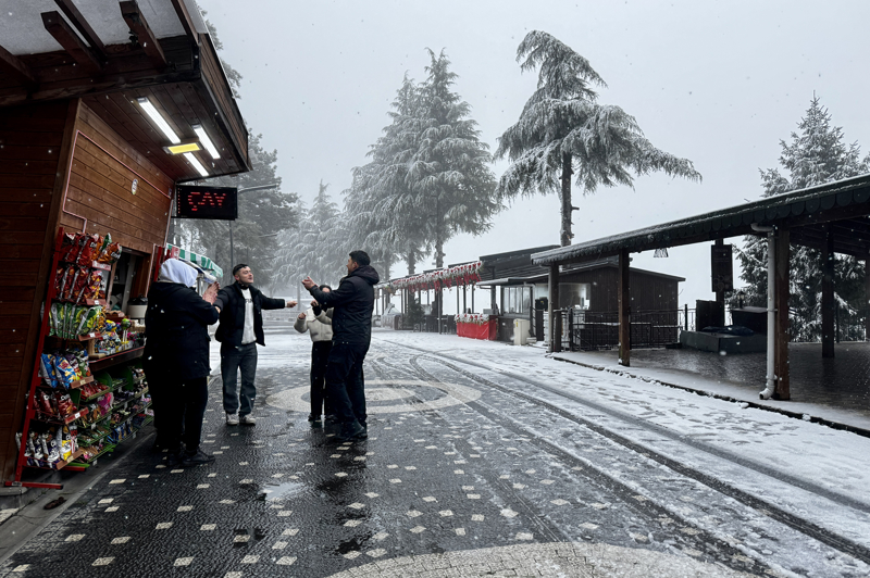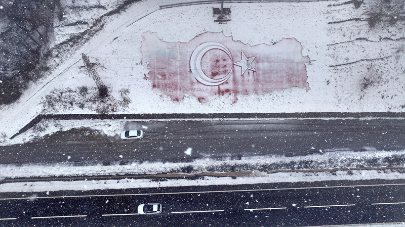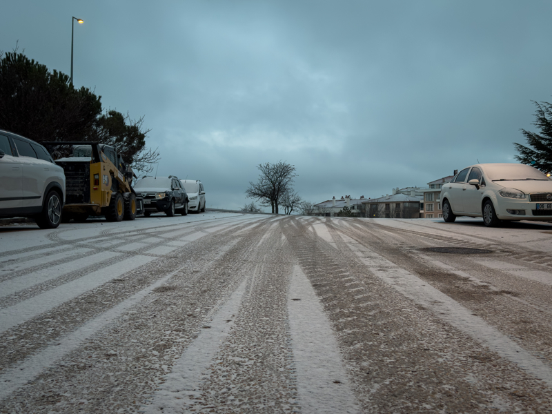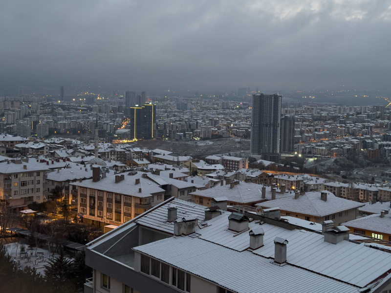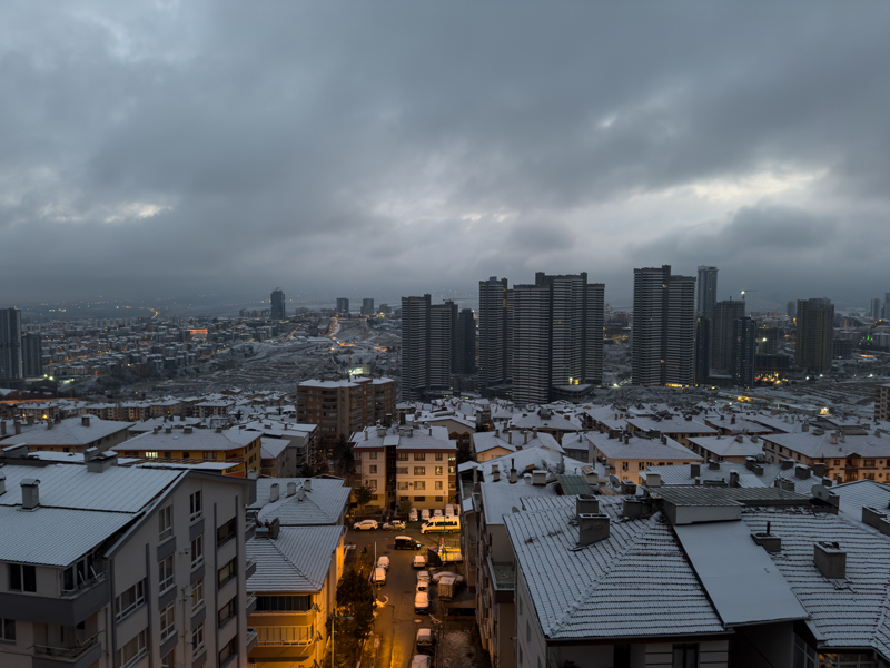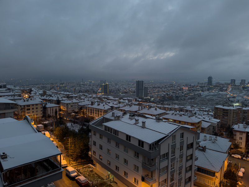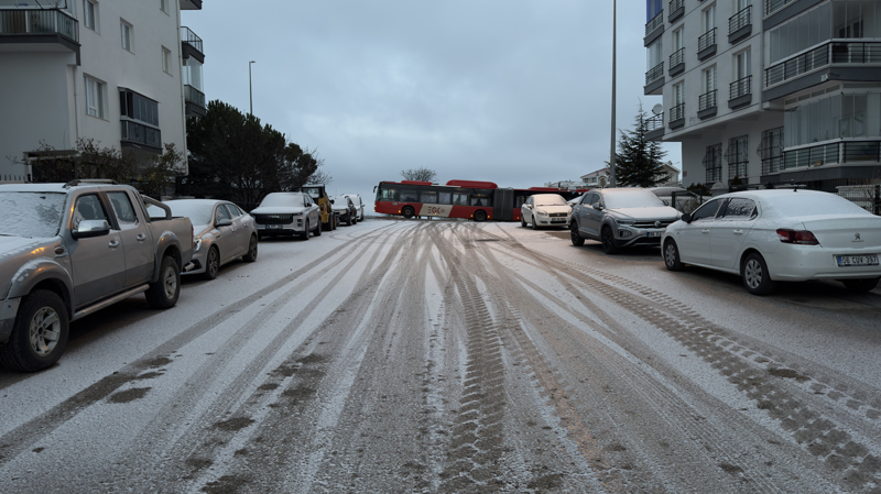 Ankara'nın Çankaya ilçesinin yüksek kesimlerinde gece saatlerinde başlayan kar yağışının ardından bina çatıları ve araçlar beyaz örtü ile kaplandı.