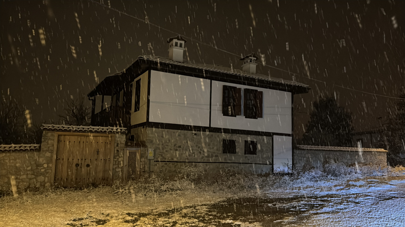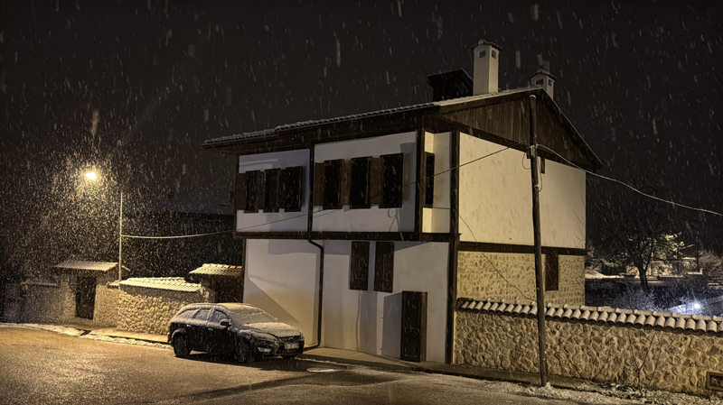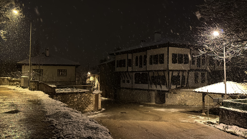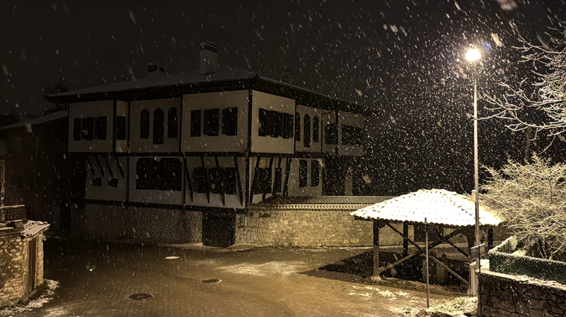 Karabük'ün Safranbolu ilçesinde etkili olan kar yağışının ardından Bağlar bölgesindeki tarihi konakların çatıları beyaza büründü.