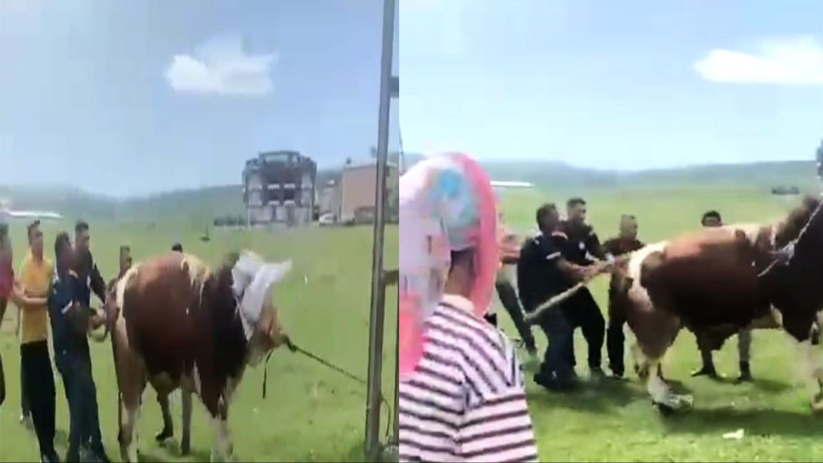 Boğa halatın kopmasıyla çevredeki vatandaşların olduğu yere yöneldi. Ortalık adeta savaş alanına dönerken, boğa önüne geçen bir kişiye zarar verdi. Sahiplerinin uzun uğraşları sonucu boğa zor olsa da zapt edilerek kesilmek üzere yeniden halatla bağlandı.