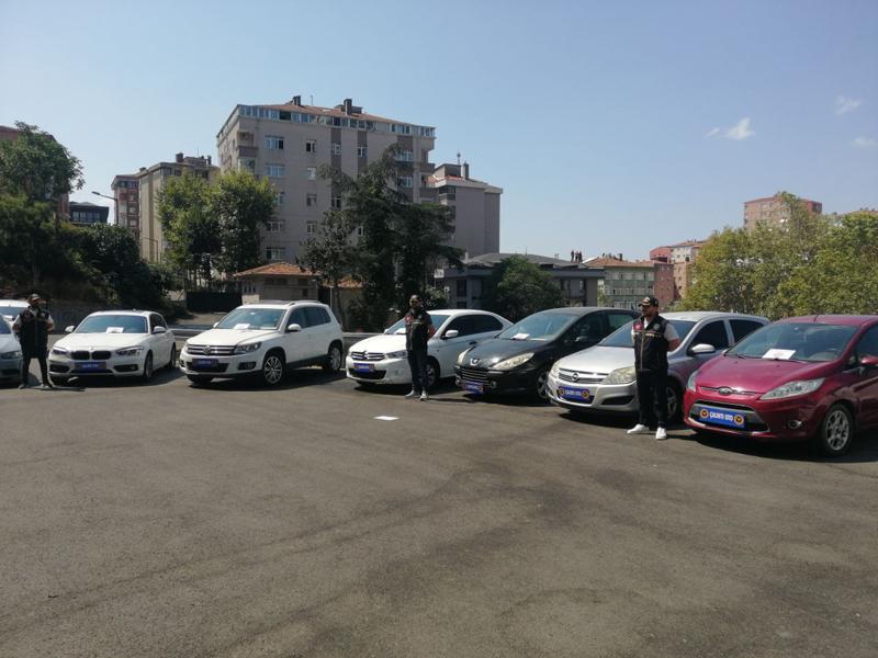 Operasyonlarda ele geçirilen araçlar Gayrettepe'deki Asayiş Şube Müdürlüğü bahçesinde sergilendi.