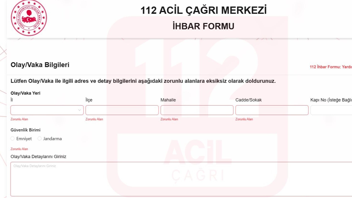 Formun bir diğer bölümü, vatandaşların olayın detaylarını açıklamasına olanak tanıyor. Ayrıca ihbarın hangi güvenlik birimine yönlendirileceği de (Emniyet veya Jandarma) seçilebiliyor.