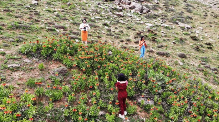 Bölgede bulunan endemik ters laleleri görmek için yüksek rakımlı dağa çıktıklarını anlatan kadınlardan Ceylan Güngör, "Çünkü çok kısa ömürleri var. 15-20 günlük ömrü olan bu ters laleleri görmek için yaklaşık 1 saat dağı tırmanarak buraya ulaştık. Buna değdi çünkü çok güzel bir görüntü var. Çok güzel fotoğraflar aldık. Keşke kısa ömürlü olmasalardı. Lalelerimiz çok hassaslar. Buraya gelip laleleri fotoğraflamak isteyen insanlarımızdan ricamız koparmayalım, doğamızı bozmayalım" dedi.