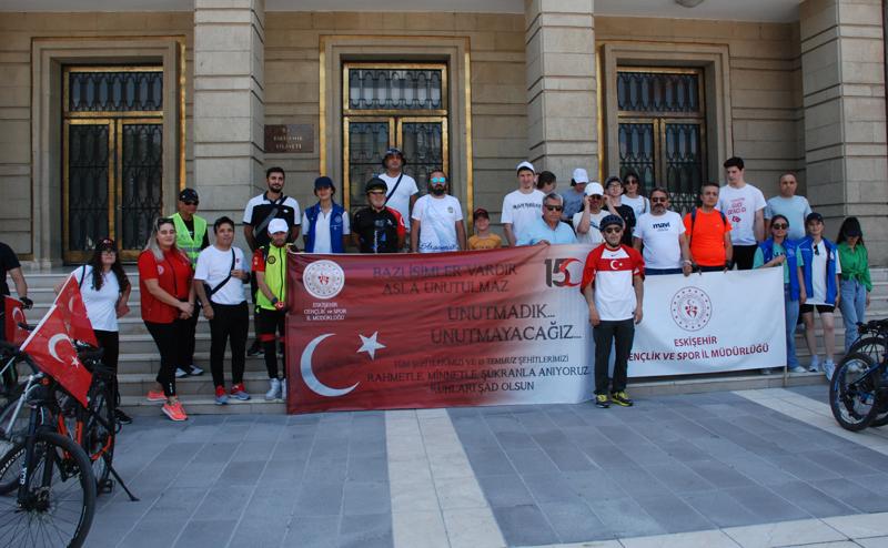 Katılımcılar, Türk bayraklarıyla donattıkları bisikletleriyle Vilayet Meydanı'ndan Dede Korkut Parkı istikametine pedal çevirdi. Meydanları 15 Temmuz marşlarıyla turlayan bisikletliler, birlik ve beraberlik mesajı verdi.