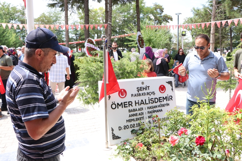 Niğde Valisi Cahit Çelik ve protokol üyelerinin şehitliği ziyaretinde, Kur'an-ı Kerim okundu, dua edildi ve şehit mezarlarına karanfil bırakıldı. Protokol üyeleri, daha sonra Şadırvan Parkı'nda açılan "15 Temmuz Demokrasi ve Milli Birlik Günü" temalı fotoğraf sergisini gezdi. Programa, Vali Çelik'in yanı sıra Belediye Başkanı Emrah Özdemir, İl Emniyet Müdürü Adnan Özdemir, İl Jandarma Komutanı Albay Gürol Okyar, protokol üyeleri ve şehit yakınları katıldı.
