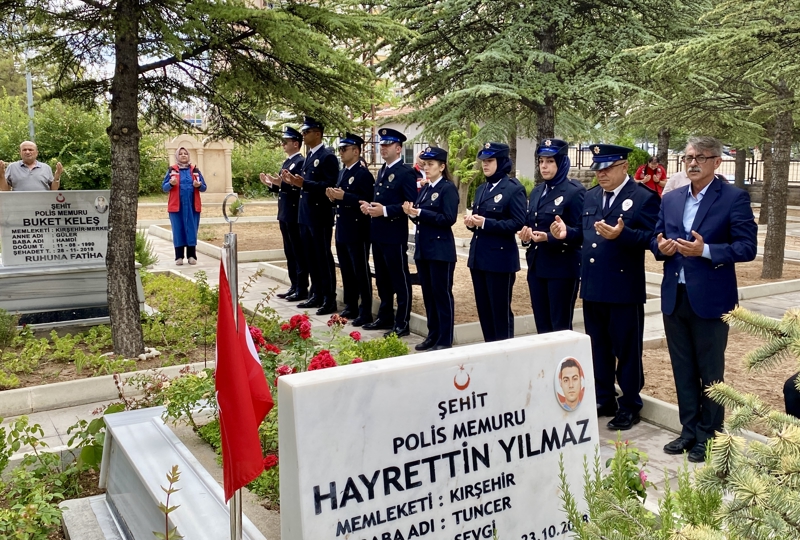 Kur'an-ı Kerim tilavetinin ardından saygı atışı yapılırken, protokol üyelerince şehit kabirlerine karanfil bırakıldı. Daha sonra Şehir Mezarlığı'ndaki Polis Şehitliği ziyaret edilerek dua okudu.