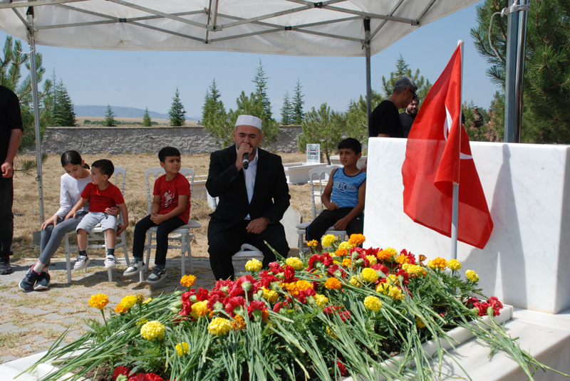 Törende, protokol üyeleri, şehidin mezarına kırmızı gül bıraktı.
