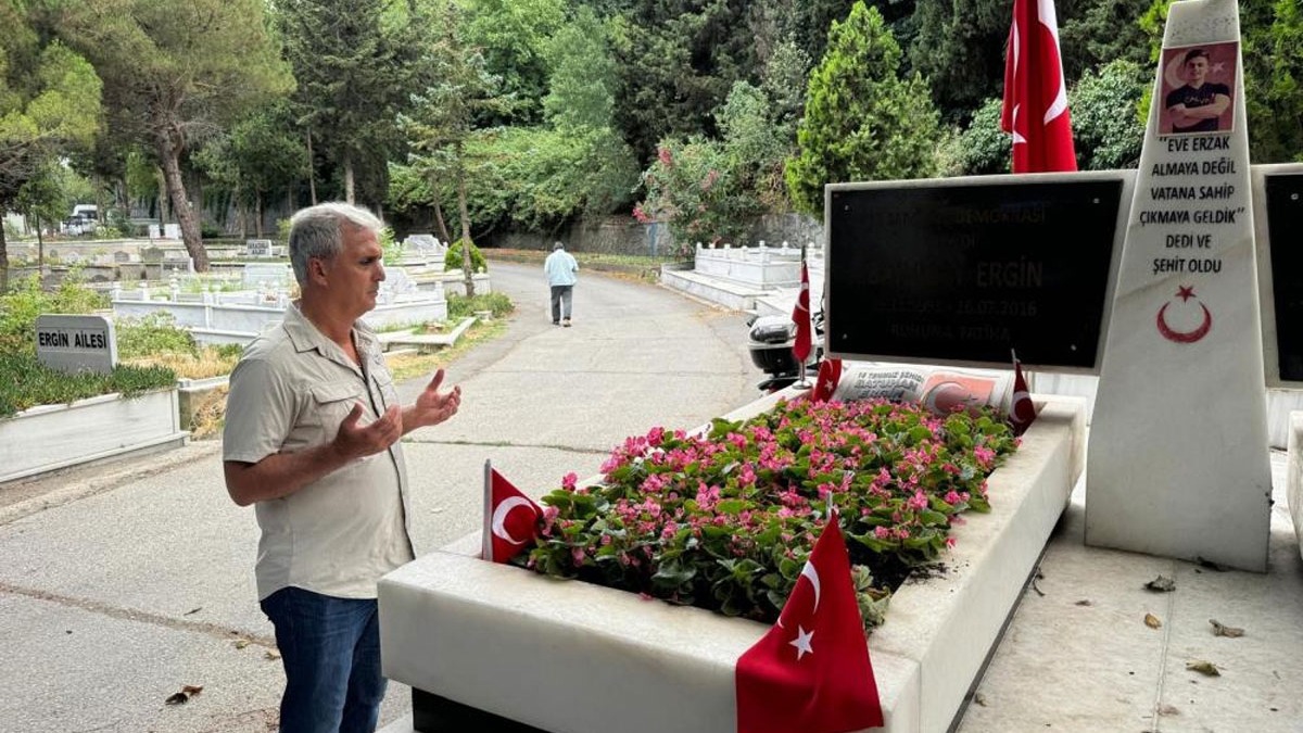 Şehit oğlunun kabrinin başındaki başındaki bayrak bayağı eskidiğini, renginin solduğunu yırtıldığını anlatan baba Ergin, "Bu durumu ben güvenlik görevlisi arkadaşa söyledim. 15 Temmuz geliyor bu bayrağı değiştirin diye. Aradan birkaç gün geçti ve bayrağın değişmediğini gördüm. Zincirlikuyu Mezarlıklar Müdürlüğünde bu işle ilgilenen kişi, 'Bayrağı değiştirmek bizim görevimiz değil, onu da şehidin babası değiştirsin' diye bana haber gönderdi. Ben de bu duruma çok sinirlendim. Netice bayrağı değiştirmek değil ben kendim de değiştiririm bayrağı ama burası bir mezarlık. Bu bayrak bizim şehitlerimizin kanını alan bir bayrak. O renkte benim oğlumun da kanı var ve bayrağın rengi solmuş. Nasıl o bayrak değiştirmez. Senin cebinden mi çıkıyor o para? Ben bu olaya çok sinirlendim" ifadelerini kullandı.