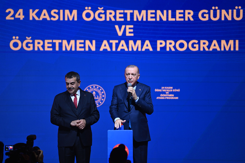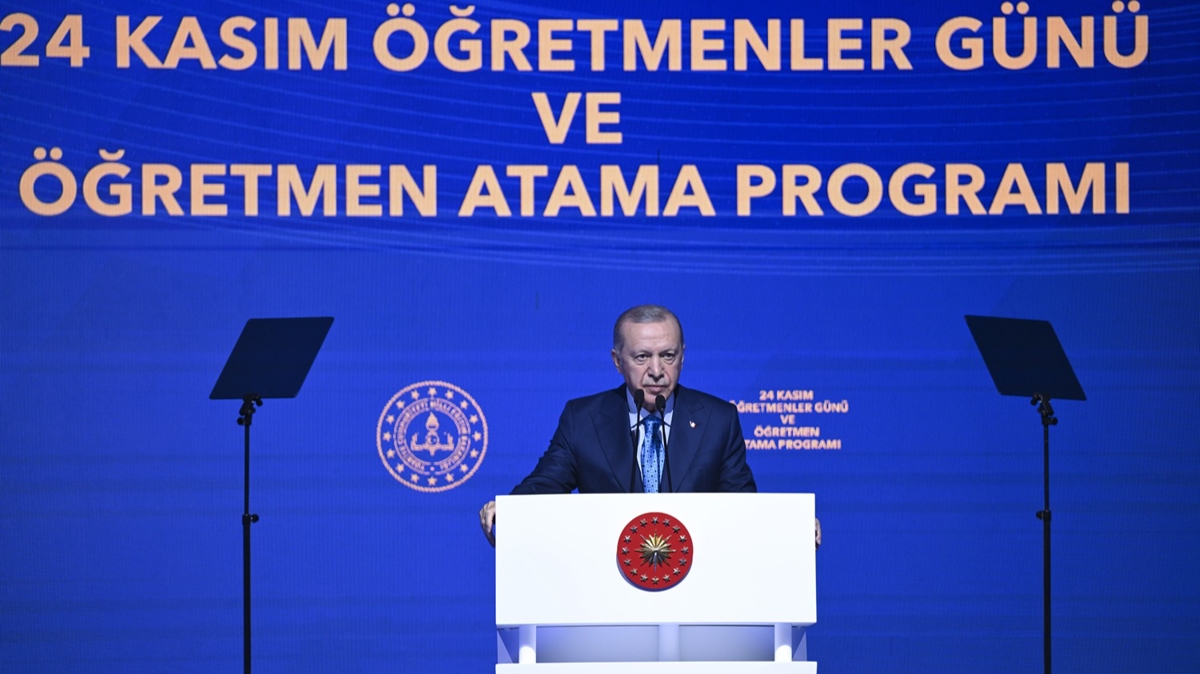 Öğretmenlerin, bilgiyi hikmetle yoğurup kalpleri terbiye eden birer gönül işçisi, milletin değerlerini yarınlara taşıyan birer köprü konumunda olduğunu vurgulayan Erdoğan, "Biz eğitim-öğretim yoluyla yalnızca meslek sahibi bireyler değil, fikri hür, vicdanı hür, irfanı hür nesiller yetiştirme derdindeyiz. Bir milyon öğretmenimizle, büyük eğitim ailemizin bütün fertleriyle, kökleriyle bağları sağlam kuşakların yetişmesi için gece gündüz çalışıyoruz. Burada şu noktayı özellikle vurgulamak isterim. Bu ideale ulaşmak yalnızca diplomayla ya da bilgiyle değil, şahsiyet inşa eden bir anlayışla mümkündür." diye konuştu.