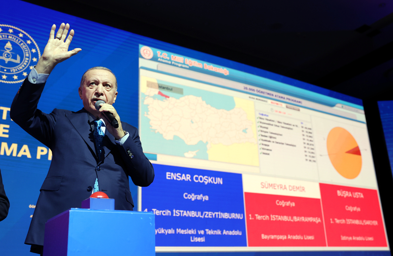 Öğretmen başına düşen öğrenci sayısında da kayda değer bir ilerleme sağladıklarını belirten Erdoğan, "2002'de ilköğretimde 28, ortaöğretimde 18 olan oranlar, bugün ilkokulda 18'e, ortaokulda 14'e ve ortaöğretimde ise 12'ye indi. Sadece bu veriler bile Türkiye'nin eğitim alanında 22 yılda yazdığı eşsiz başarı hikayesinin en somut göstergesidir." ifadelerini kullandı.