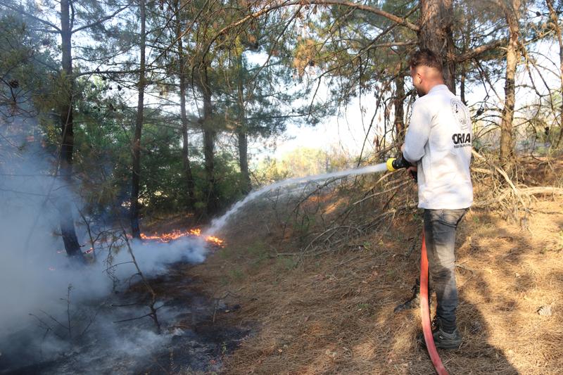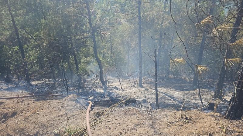 Ekiplerin yaklaşık 1 saatlik çalışmaları sonucu kontrol altına alınan yangında, yaklaşık 10 dekarlık kızılçam ormanı zarar gördü.
