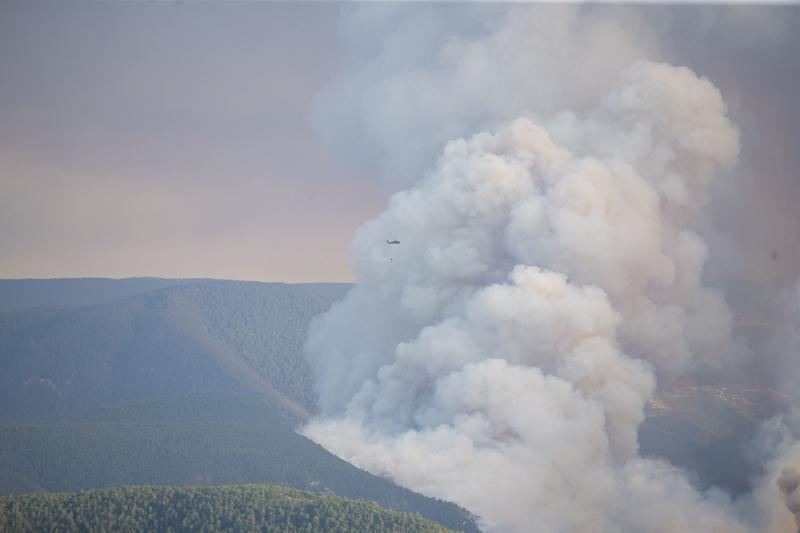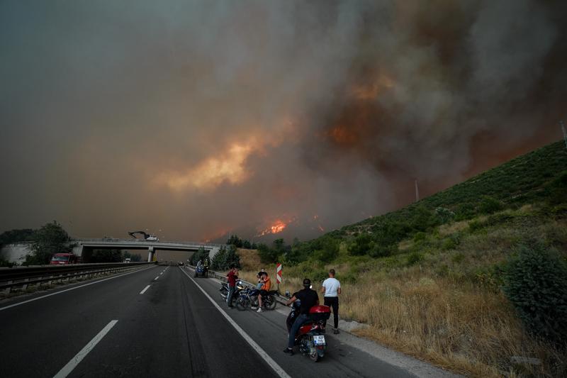 Rüzgarın etkisiyle büyüyen yangın nedeniyle bölgede yoğun duman oluştu.