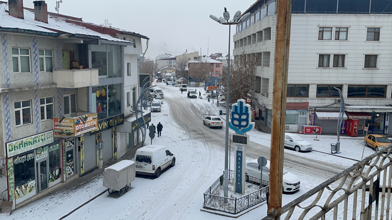 Malazgirt ilçesinde de sabah saatlerinde etkili olan kar nedeniyle ilçe merkezi beyaza büründü, belediye ekipleri cadde ve sokaklarda kar temizleme çalışması yaptı.