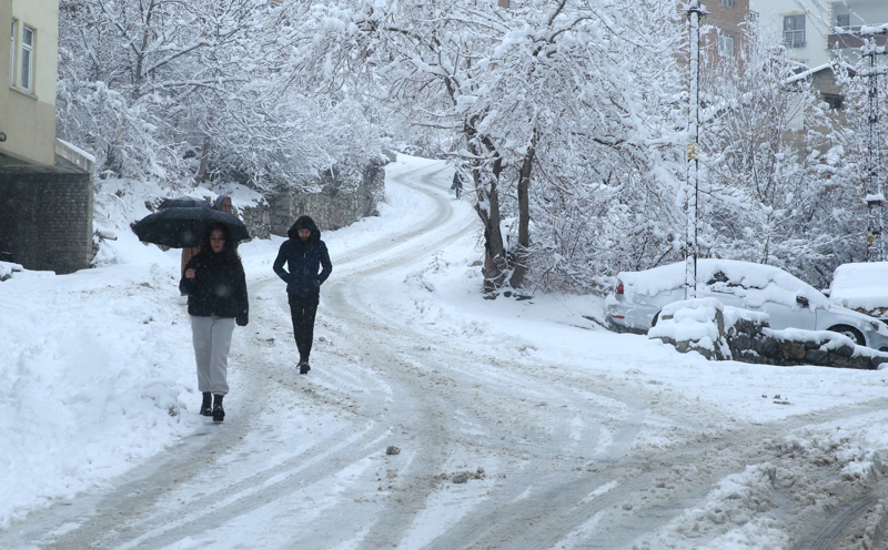 Hakkari'de de akşam saatlerinde başlayan kar nedeniyle kent merkezi beyaza büründü.