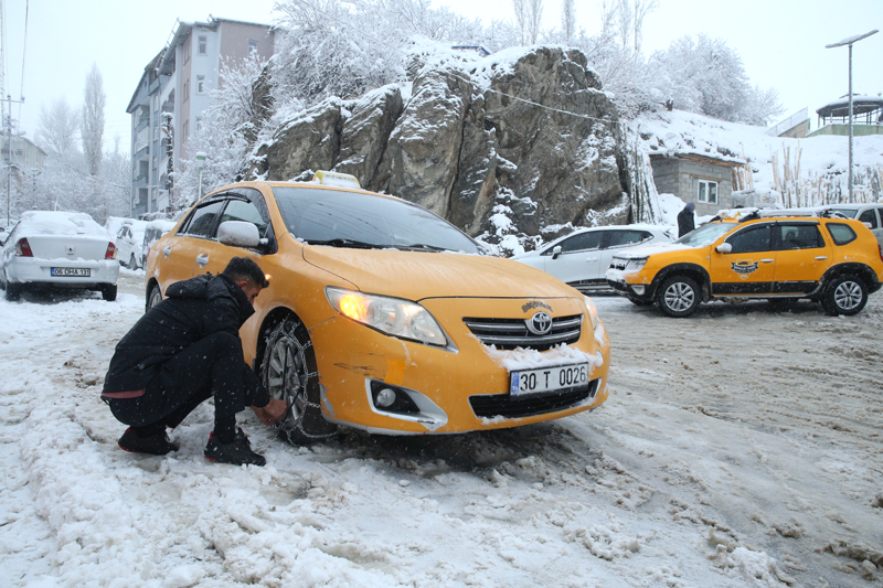 Karın etkili olduğu Yüksekova ilçesinde de vatandaşlar evlerinin önünde ve araçların üzerinde biriken karı temizledi, trafikte aksamalar yaşandı.