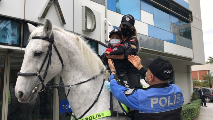 Bunun üzerine Çevik Kuvvet Şube Müdürlüğüne bağlı Atlı Birlik Grup Amirliği ekipleri, Emir Kazan için sürpriz hazırladı. Evinden polis aracıyla alınarak İl Emniyet Müdürlüğüne götürülen çocuk, burada atlı polislerle tanıştı.