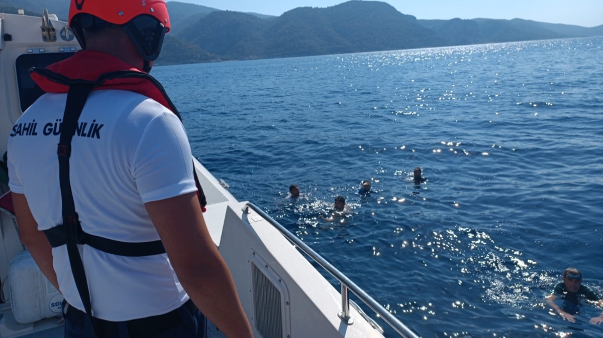 Bölgeye giden ekipler, denizdeki 5 kişiyi yakaladı.