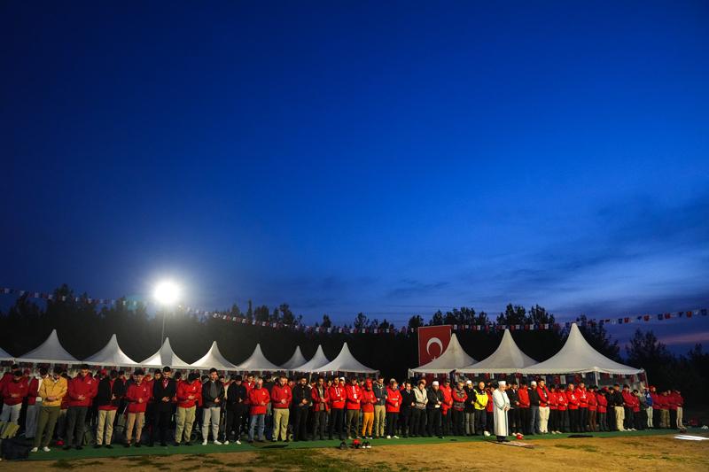 Tarihi Gelibolu Yarımadası Kocadere Köyü Kamp Alanı'nda, şafak vakti şehitlere saygı için top atışı yapıldı. Daha sonra çorba ikramının ardından İl Müftüsü Mustafa Bilgiç tarafından sabah namazı kılındı.
