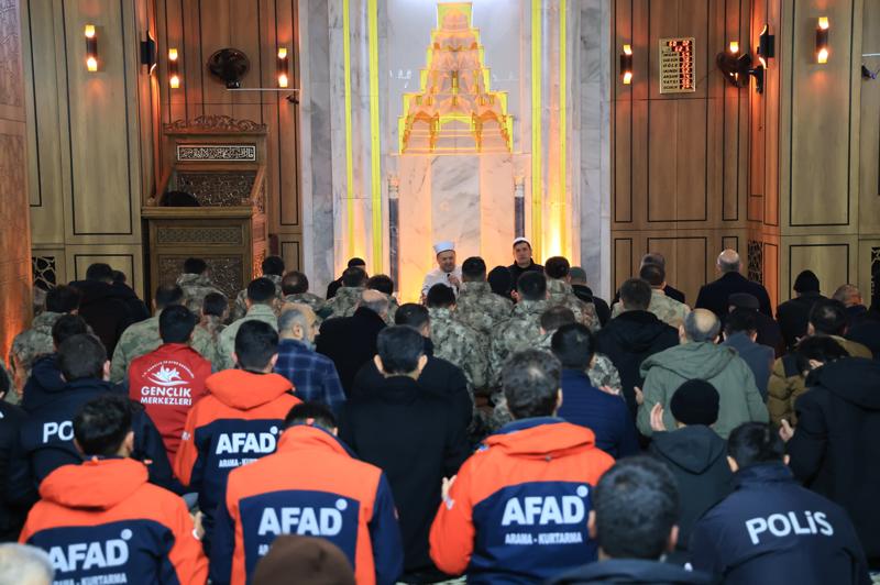 Kahramanmaraş merkezli 6 Şubat 2023'te meydana gelen depremlerden etkilenen Elazığ'da, İmam-ı Azam Camisi'ndeki programda sabah namazı kılındıktan sonra Kur'an-ı Kerim okundu.