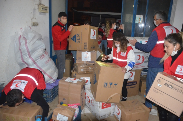 Kampanya kapsamında, mahallede üretilen zeytin, zeytinyağı, turşu ve salçanın yanı sıra battaniye, yorgan gibi malzemeler, Türk Kızılay İznik Şubesine teslim edildi.