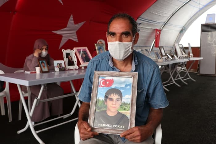 Diyarbakır'dan 9 yıl önce 14 yaşında dağa kaçırılan oğlu Mehmet için eylem yapan Ömer Tokay da çocuğunun kandırılarak dağa götürüldüğünü belirtti.