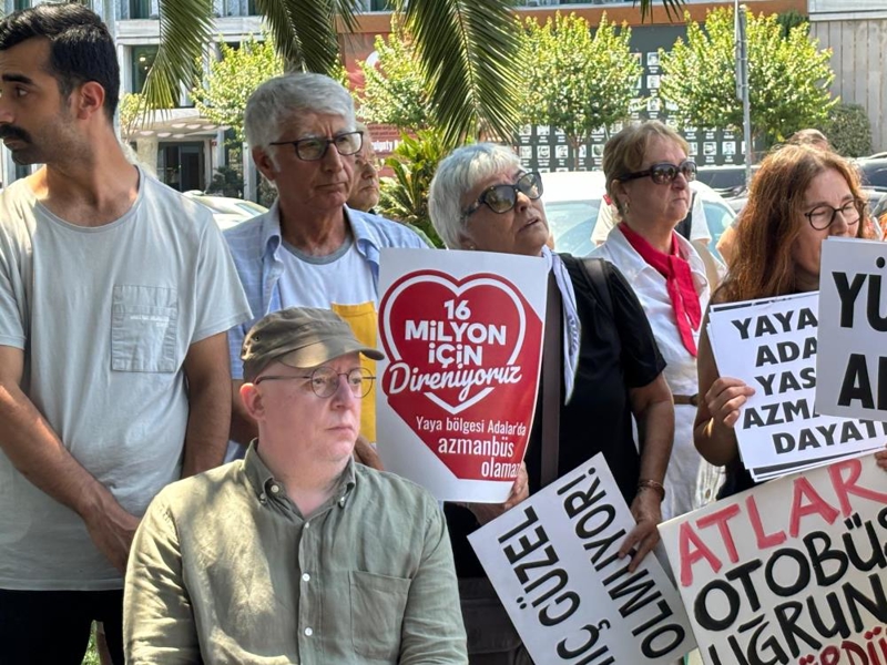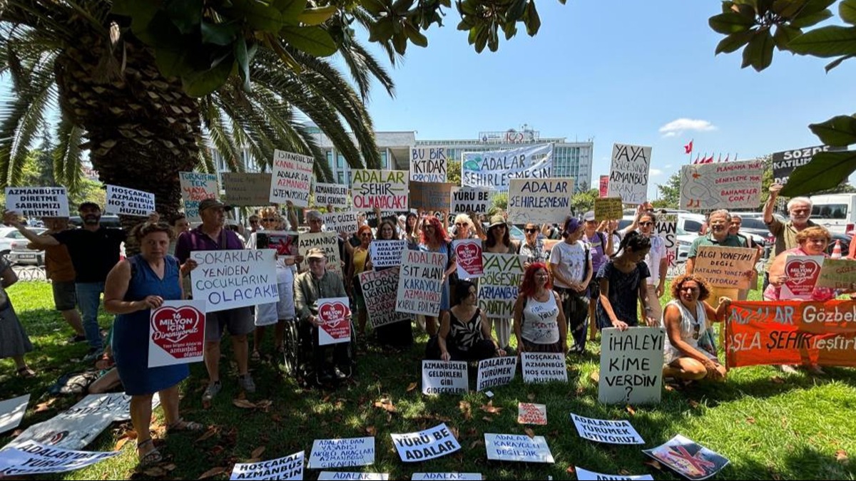 Adalar'da hizmete alınan ve ada sakinlerinin 'azmanbüs' olarak adlandırdığı elektrikli minibüsün bölgeye zarar verdiğini savunan bir grup, geçtiğimiz günlerde adliyeye giderek İBB Başkanı Ekrem İmamoğlu ve İETT Genel Müdürü İrfan Demet hakkında suç duyurusunda bulunmuştu. Bir grup Adalar sakini bugün ise Saraçhane'ye gelerek İBB Başkanı Ekrem İmamoğlu'nu protesto edip eylem yaptı. Ellerinde çeşitli pankartlar bulunan grup, zaman zaman slogan atarak azmanbüslerin kaldırılmasını istediklerin belirtti. Basın açıklaması yapan grup üyeleri dünya mirası olan Adalar'ın korunmasının öncelikli olduğunu savundu. Azmanbüsler ile ilgili endişelerini dile getiren vatandaşlar Adalar'ın şehirleşmesine yol açacağını söyledi.