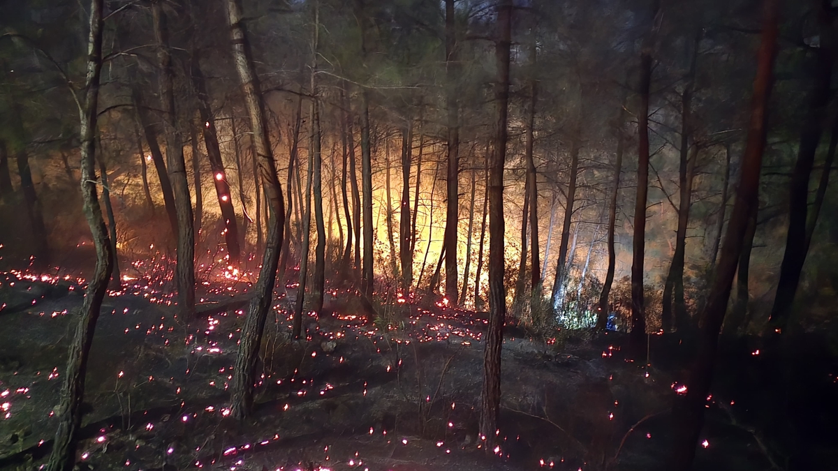 Yangın, gece saatlerinde ilçeye bağlı Dağılcak mevkisindeki ormanda çıktı. Ormandan alevlerin yükseldiğini görenler, durumu 112 Acil Çağrı Merkezi'ni bildirdi.