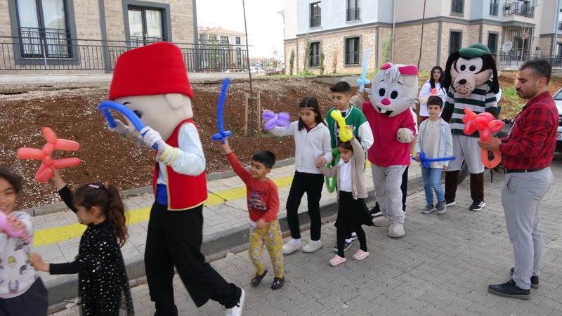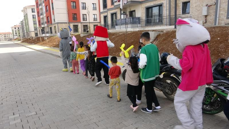 Bayram ziyaretlerinin yanı sıra depremzede çocuklar için de binaların bahçelerinde maskotlar tarafından gösteriler yapılarak çeşitli oyunlar oynandı. Çocuklara ise bir birinden farklı ve güzel hediyeler dağıtıldı. Kendilerine yapılan ziyaretten dolayı oldukça mutlu olduklarını dile getiren depremzede vatandaşlardan Turgut Doğan, "Depremde çok zorlu süreçler geçirdik. Kayıplarımız var, Allah hepsine rahmet eylesin, kalanlara da sabırlar ihsan eylesin. Şuanda da çok şükür devletimizin bizlere sunmuş olduğu hizmetlerden dolayı bizler artık rahat etmekteyiz. Şimdi bayramları birazcık daha eski bayramlar tadında yaşamaya başladık" dedi.