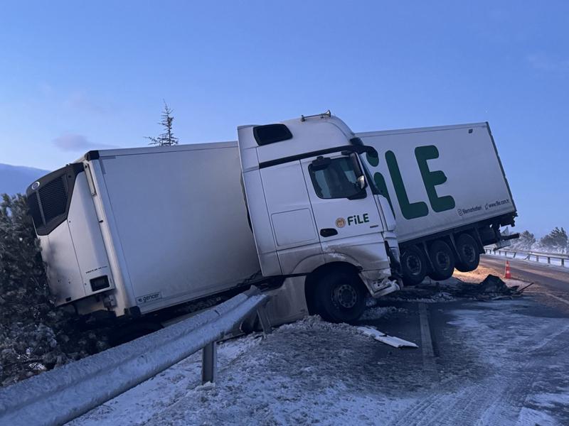 Ankara yönüne giden ve sürücüsü ile plakası öğrenilemeyen bir yolcu otobüsü, ilçenin Topdere mevkiinde bir çekici ve otomobille çarpıştı.