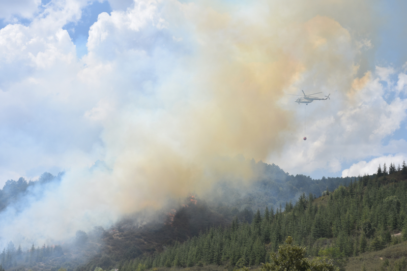 Akharım beldesi yakınlarındaki ormanlık alanda henüz bilinmeyen nedenle yangın çıktı.