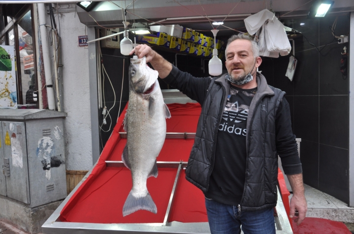 Bu büyüklükte bir levreği tezgahlarda görmenin oldukça zor olduğunu belirten Yurtaydın, 1600 lira fiyat belirledikleri balığın kilogramını ise 120 liradan satışa çıkardığını ifade etti.