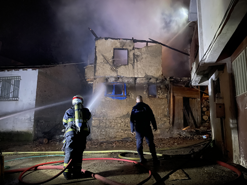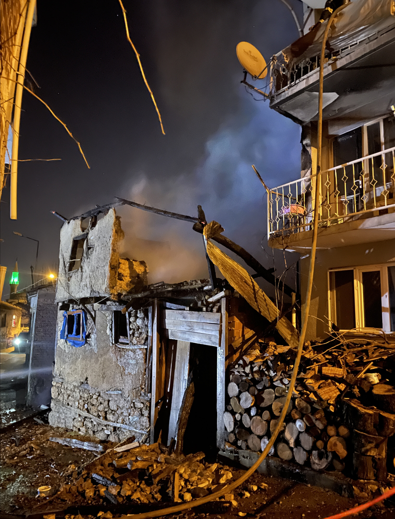 Ekiplerin müdahalesiyle diğer evlere sıçramadan yaklaşık bir saatte söndürülen yangında, ahırdaki 10 büyükbaş hayvan telef oldu.