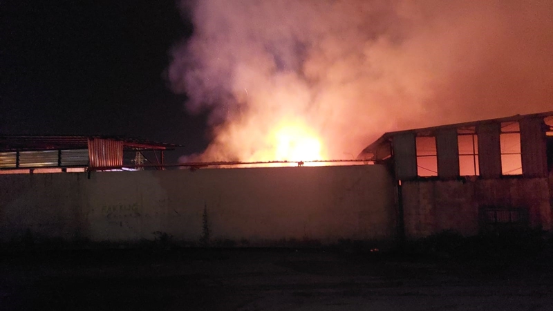 Ekipler, yangını söndürebilmek için balyozla imalathanenin duvarında gedik açtı.