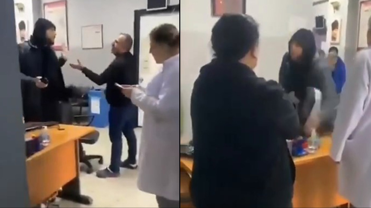 Saldırgan kendisine engel olmaya çalışanlara aldırış etmeden masa üzerindeki bilgisayarlara da zarar verdi. O anları başka hastalar cep telefonu kameralarıyla kaydetti.