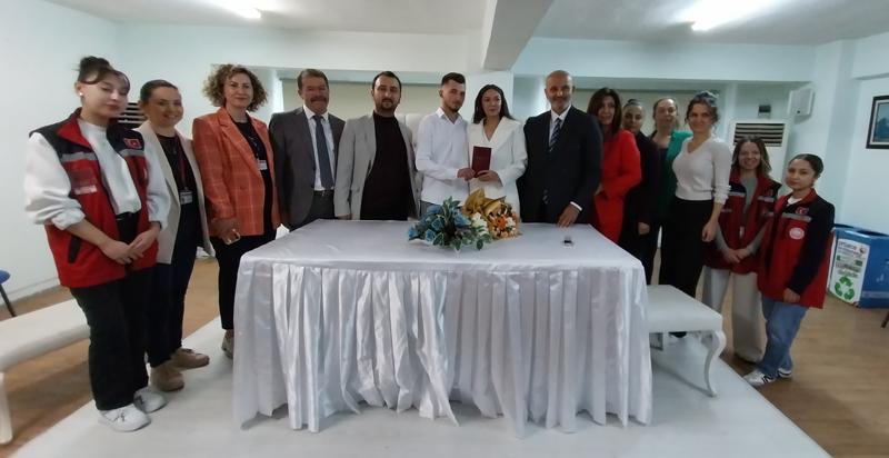 Muğla Aile ve Sosyal Hizmetler İl Müdürü Yakup Kütük ise "Evlenecek Gençlerin Desteklenmesi Projesi" ile Muğla'da gerçekleştirilen ilk nikahın Ortaca'da yapıldığını söyledi.