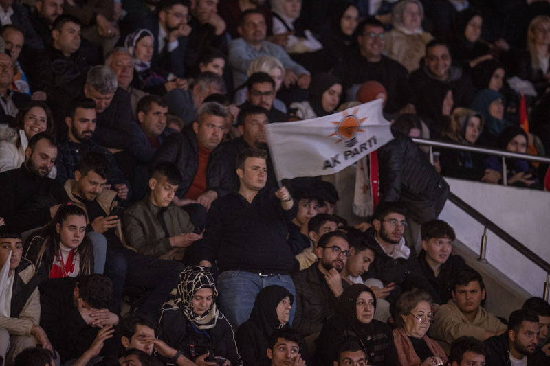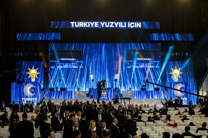 Salonda, "Doğrusu AK Parti", "Türkiye Yüzyılı için doğru adımlarla yola devam", "Türkiye Yüzyılı için hemen şimdi", "Doğru zaman doğru adam", "Lider masa başında değil iş başında belli olur" sloganlarının yazılı olduğu afişler yer aldı.