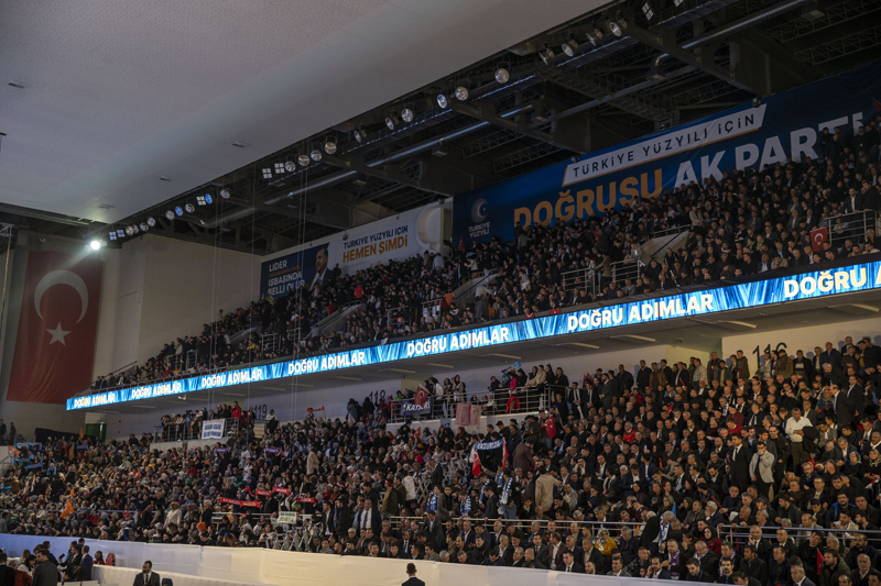 Salonun çevresi bariyerlerle araç ve yaya trafiğine kapatılırken, toplantıya katılacaklar için güvenlik noktaları oluşturuldu. Partililer ve davetliler, detaylı üst aramasından geçirildikten sonra salona girişlerine izin verildi.
