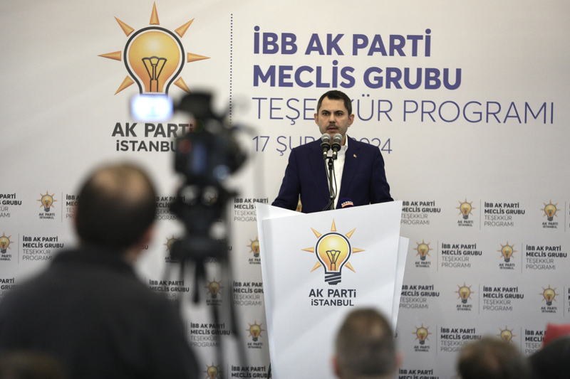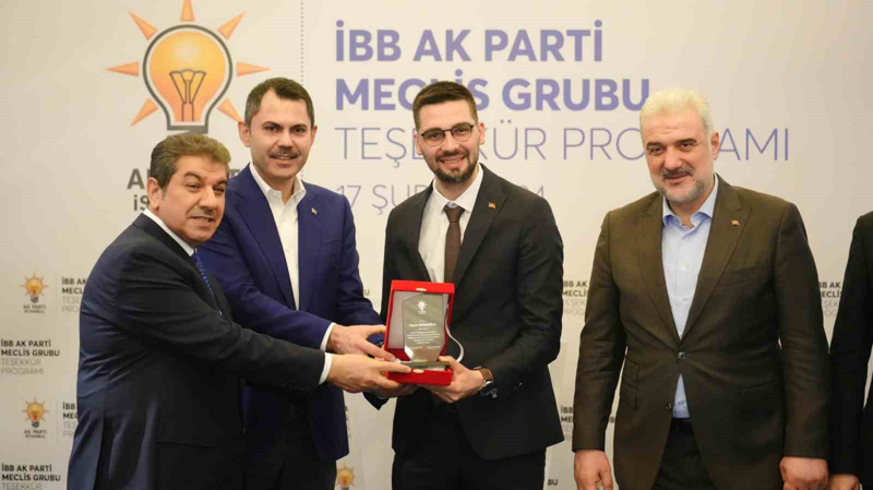 AK Parti İstanbul Büyükşehir Belediye Başkan Adayı Murat Kurum, konuşmasının ardından meclis üyelerine plaket verdi.