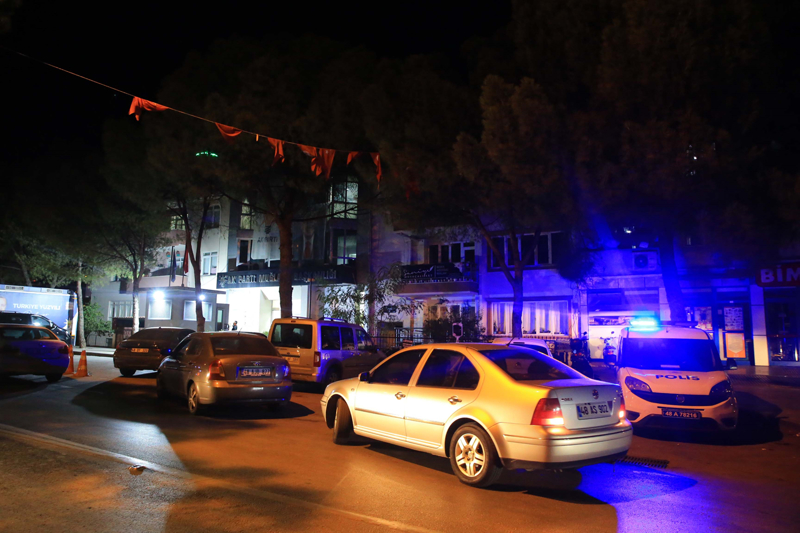 Menteşe ilçesi Orhaniye Mahallesi Zihni Derin Caddesi'ndeki parti binasına 22.00 sıralarında gelen bir kişi, elindeki taşı binanın girişinde bulunan cama attı. Şüpheli, ardından olay yerinden kaçtı.