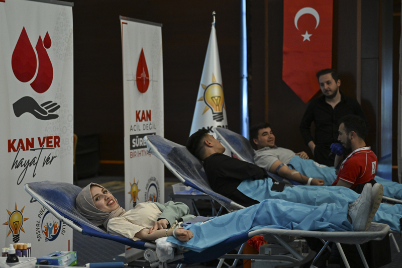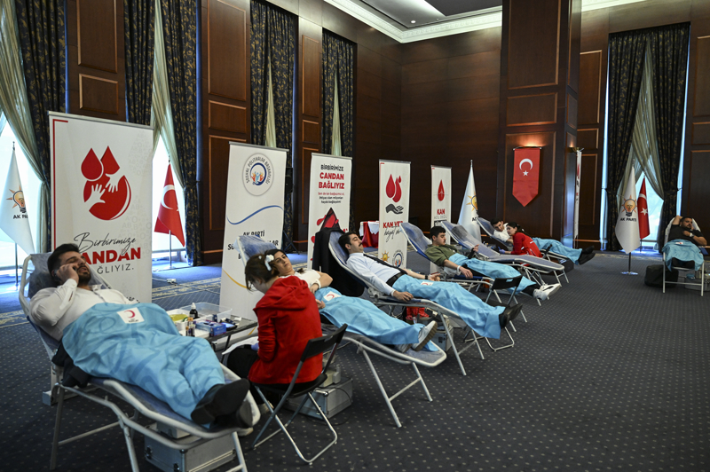 Tüm il ve ilçe başkanlıklarında eş zamanlı olarak başlayan kan bağışı programına, Cumhurbaşkanı Recep Tayyip Erdoğan da katılarak bağışçılarla sohbet etti, fotoğraf çektirdi.
