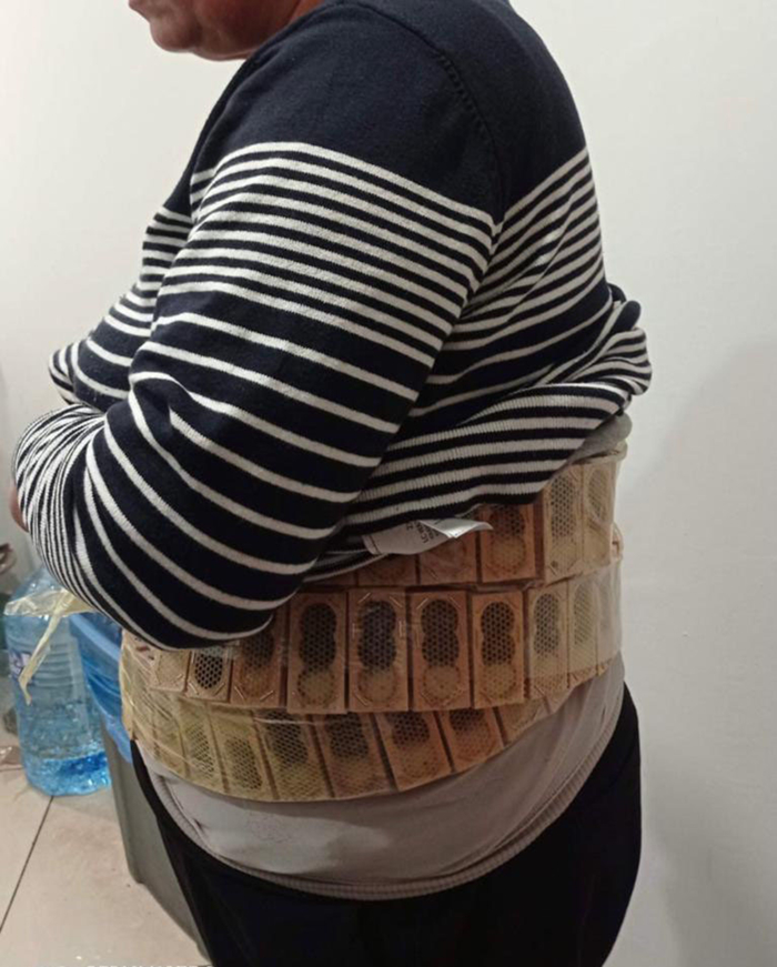Sarp Gümrük Muhafaza Kaçakçılık ve İstihbarat Müdürlüğü ekipleri, davranıştan şüphelendikleri T.B'nin üzerinde arama yaptı.
