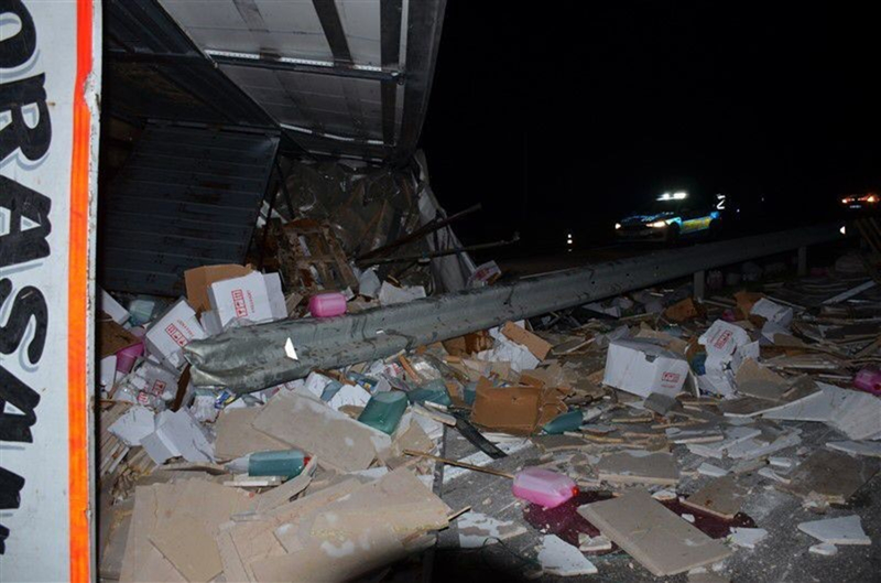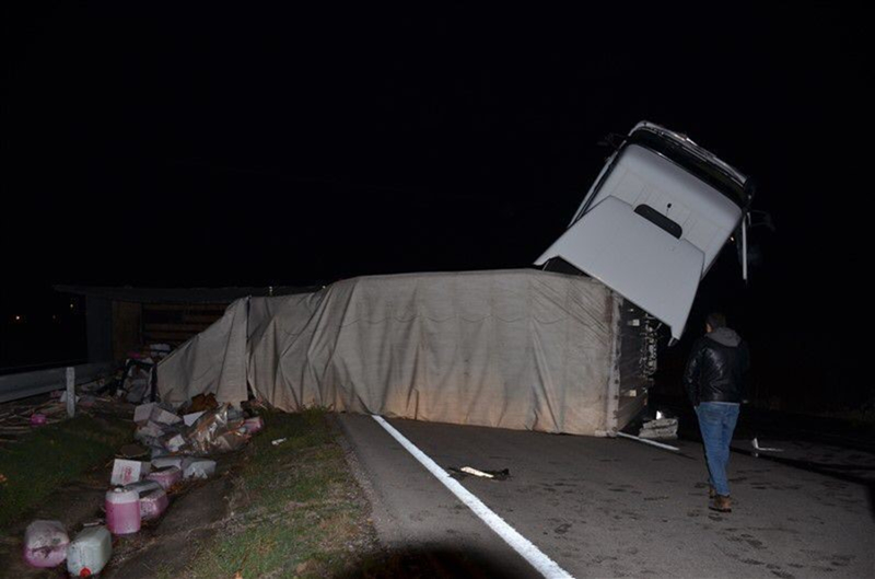 Edinilen bilgilere göre, Amasya'dan Erzurum yönüne doğru gitmekte olan Ersin Çelik (36) yönetimindeki 25 ABZ 740 plakalı tır, Taşova Dörtyol Köyü mevkii yakınlarında devrildi. Mermer, sıvı deterjan ve mobilya yüklü tırdan yola saçılan malzemeler, karayolunun bir süre ulaşıma kapanmasına neden oldu.