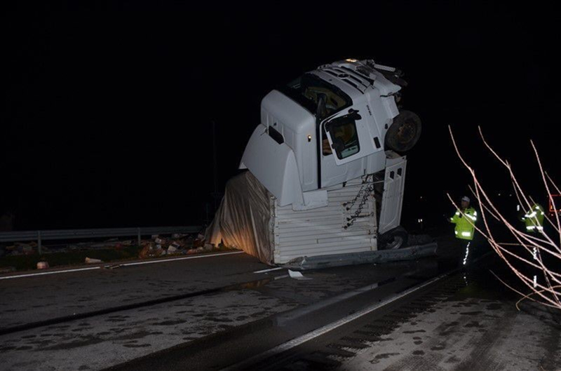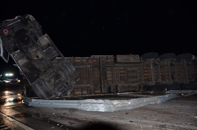Çevredekilerin ihbarı üzerine olay yerine 112 Acil Sağlık, polis ve jandarma ekipleri sevk edildi. Kaza sonucu sürücü Ersin Çelik yaralanırken, yol yaklaşık 3 saat boyunca trafiğe kapalı kaldı. Çekici ve vinç yardımıyla devrilen tır kaldırılmasının ardından yol yeniden trafiğe açıldı.