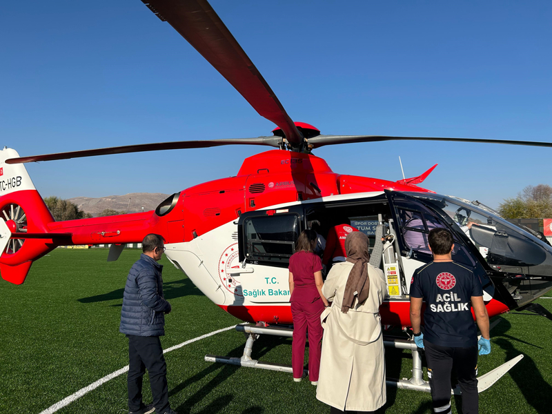 Sağlık ekiplerince burada yapılan ilk müdahalenin ardından bebek, ambulans helikopter ile Trabzon'da ki KTÜ Farabi Hastanesine sevk edildi.